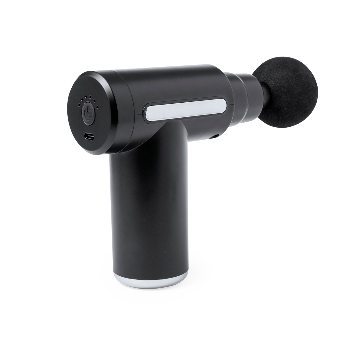 Masajeador eléctrico. Ayuda a relajar los músculos, aliviar los efectos del entrenamiento, liberar tensión y revitalizar el cuerpo. Con dos posiciones de intensidad y 4 cabezales para usar en distintas zonas del cuerpo. Batería recargable de larga duración de 1200 mAh – cable de carga USB incluido-. Disponible manual de instrucciones en español e inglés.