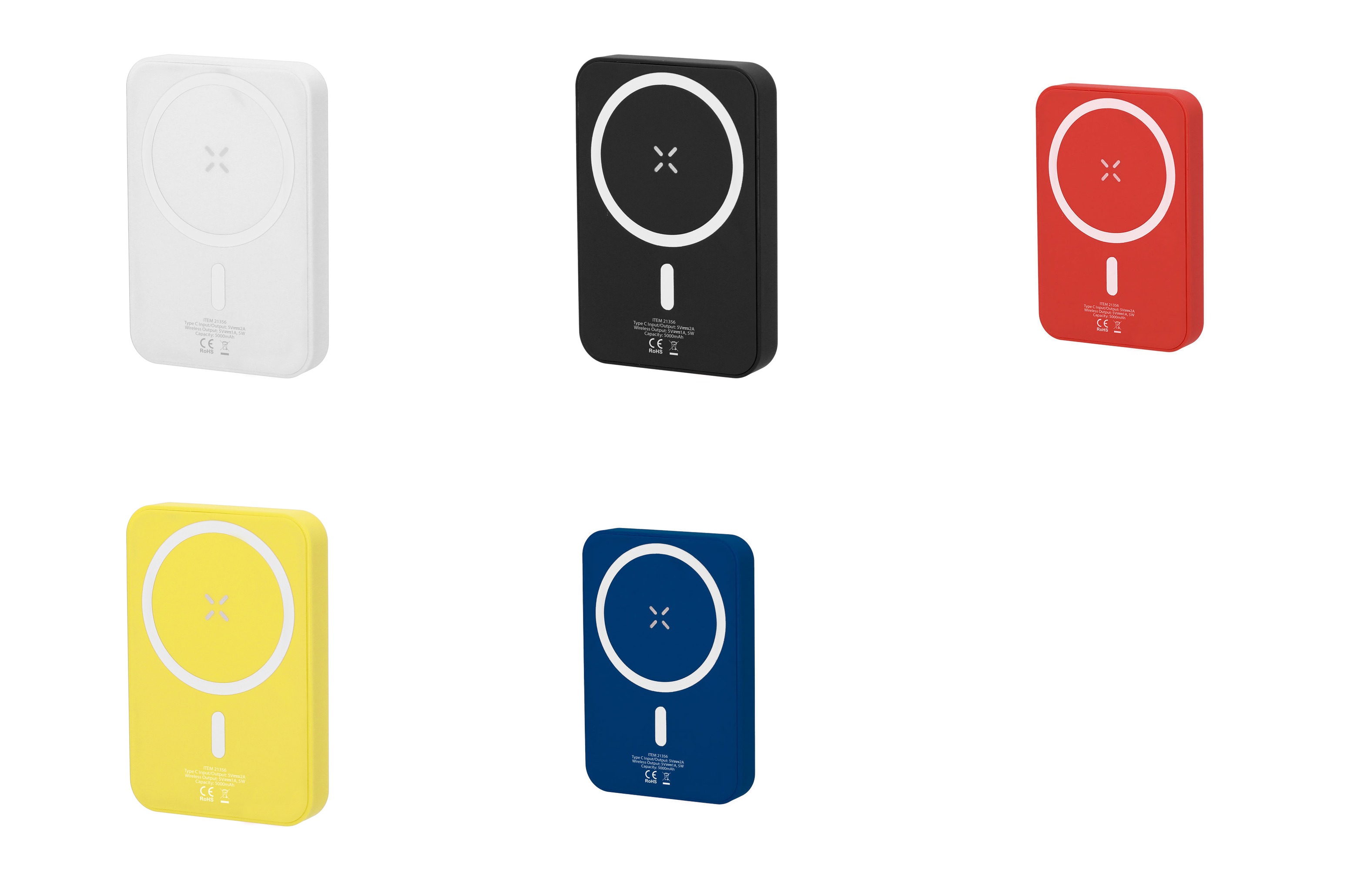 Batería auxiliar externa de 5.000 mAh con carga inalámbrica de 5W con fijación magnética Magsafe, permitiendo usar el dispositivo mientras se está cargando. Fabricada en ABS y acabado gomoso. Compatible con dispositivos equipados con tecnología de carga inalámbrica Qi.